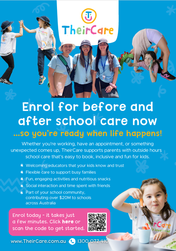 We are proud to partner with TheirCare to provide our Outside School Hours Care (OSHC) program.